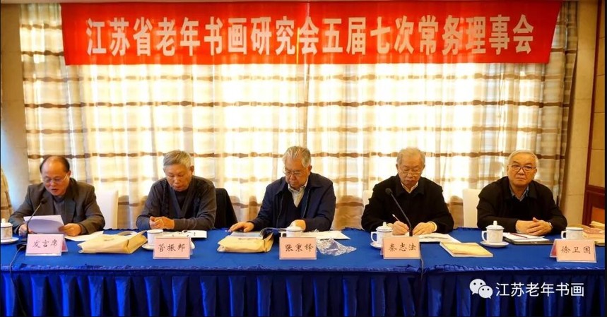 省会召开第五届七次常务理事会议2018年11月9日,江苏省老年书画研究会第五届七次常务理事会在镇江市召开,省会张秉铎会长、秦志法、管振邦常务副会长及徐卫国、韦立平等副会长、常务理事共50多人出席会议。 中国老年书画研究会常务理事韦立平传达了全国老年书画研究会在海南三沙市召开的常务理事会议精神,会议破格增补我省老干部局局长郑跃奇和副会长韦立平为常务理事。与会者一起参加了“书画家边疆万里行和博鳌采风活动”。省会副会长徐卫国介绍了纪念改革开放四十周年全省老年书画作品展的筹备、布展、编印画册、开幕式等事宜,常务副会长管振邦通报了人事增补情况。 常务副会长秦志法主持会议并组织与会的会员单位代表讨论在新时代中国特色社会主义理论指引下,如何走出一条适应基本矛盾的老年书画组织生存、发展之路。大家畅所欲言,积极建言献策,就组织归宿、选好选准会长、提高会员技艺、服务中心、奉献社会、经费来源等问题,各抒己见。取长补短。 张秉铎会长总结了六届理事会议以来的常规工作,富有开创性的书画进学校进家庭、购买政府、企业项目进行力所能及的服务、书画捐赠扶贫、加强两个基地建设、培训书画老师和创研员等工作。对下一届的主要工作提出了意向,要求各会员单位不忘初心,继续奉献,变“老有所为”为“老有作为”,甘当文化强省最后一公里的铺路石。努力加强党组织建设。