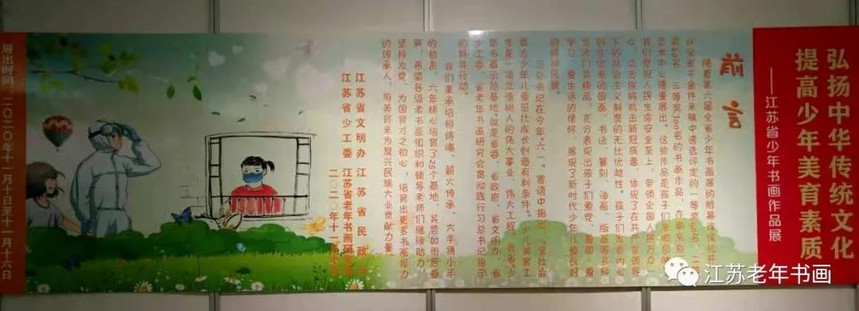 随着第六届全省少年书画展的帷幕徐徐拉开,从全省千余件来稿中遴选评定的一等奖40名、二等奖60名、三等奖300名的书画作品,在南京白云亭艺术中心隆重展出。这些作品是孩子们亲眼目睹了我们党视人民生命安全至上,带领全国人民万众一心,众志成城抗击新冠病毒,体现了在共产党领导下的社会主义制度的无比优越性。孩子们发自内心创作出来的国画、书法、篆刻、油画、版画等多种艺术门类精品,充分表现出孩子们爱党、爱国、爱学习、爱生活的情怀,展现了新时代少年儿童良好的精神风貌。习总书记在今年"六一”寄语中指出,"全社会要为少年儿童茁壮成长创造有利条件"。少儿美育工作是一项立德树人的伟大事业、伟大工程。我会创建"少年书画示范基地"的活动,就是落实省委、省政府、省文明办、省少工委的要求,贯彻践行习总书记指示的具体行动。 我会秉承培根铸魂、薪火传承、大手携小手的初衷,六年来,我们精心培育了25个基地。目前,其势如雨后春笋,省会要求各级老年书画组织和辅导老师们继续助力,坚持为党、为国育才之初心,培育出更多书画接力的传承人,用美育来为复兴民族大业贡献力量。