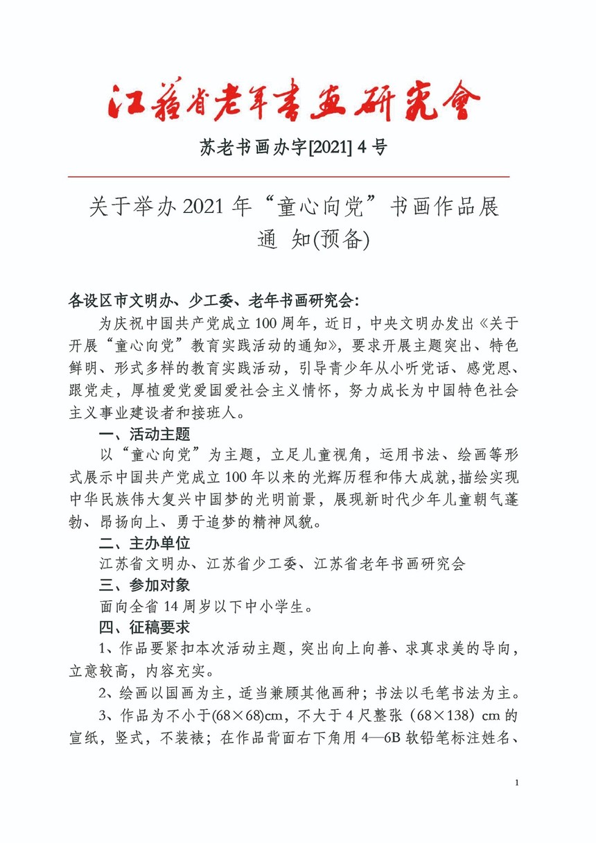 关于举办2021年“童心向党”书画作品展 通 知(预备)